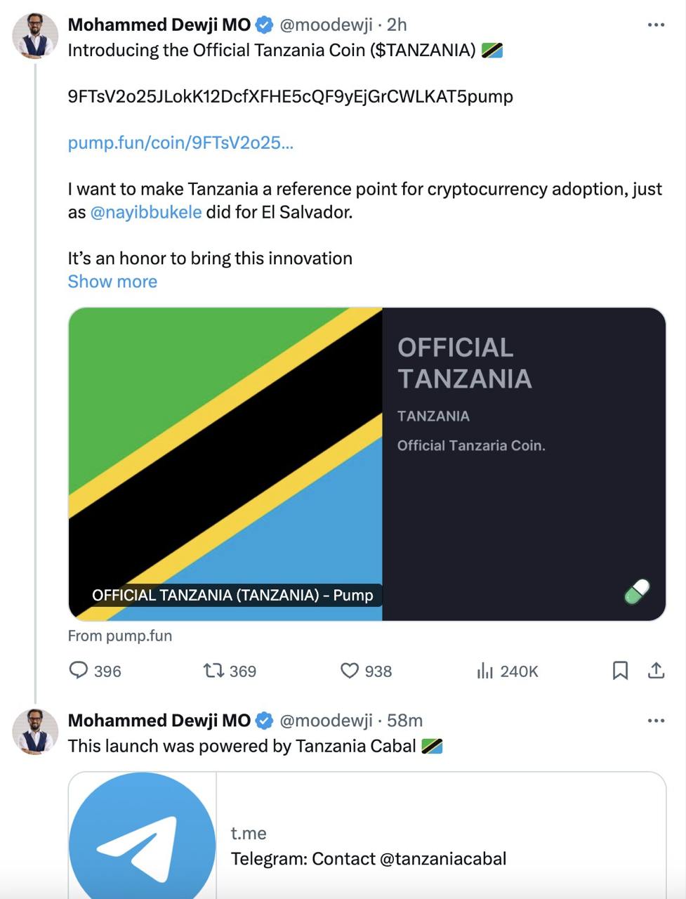 The scam first unfolded on Wednesday morning when Dewji’s X account began posting unusual promotional messages endorsing the newly minted token, $TANZANIA. A brief, 10-second video was shared that appeared to show Dewji in his home office, casually holding a piece of paper with the word “TANZANIA” scribbled on it. At first glance, the video lent an air of legitimacy to the token, especially given Dewji’s status as a prominent African magnate known for his influential presence both on the continent and globally.